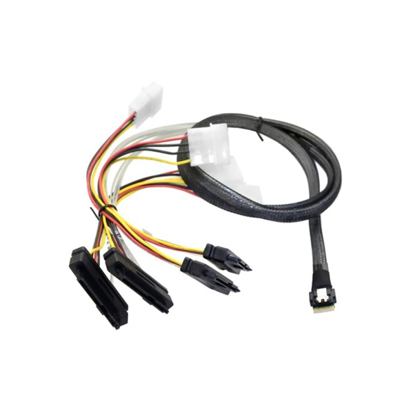 Il combine les quatre ports du contrôleur RAID dans un seul connecteur verrouillé et permet de connecter quatre voies de 3Gb/s, 6Gb/s ou 12Gb/s SAS/SATA via un seul câble du contrôleur RAID au fond de panier du système ou jusqu'à quatre disques durs avec un câble éclaté.