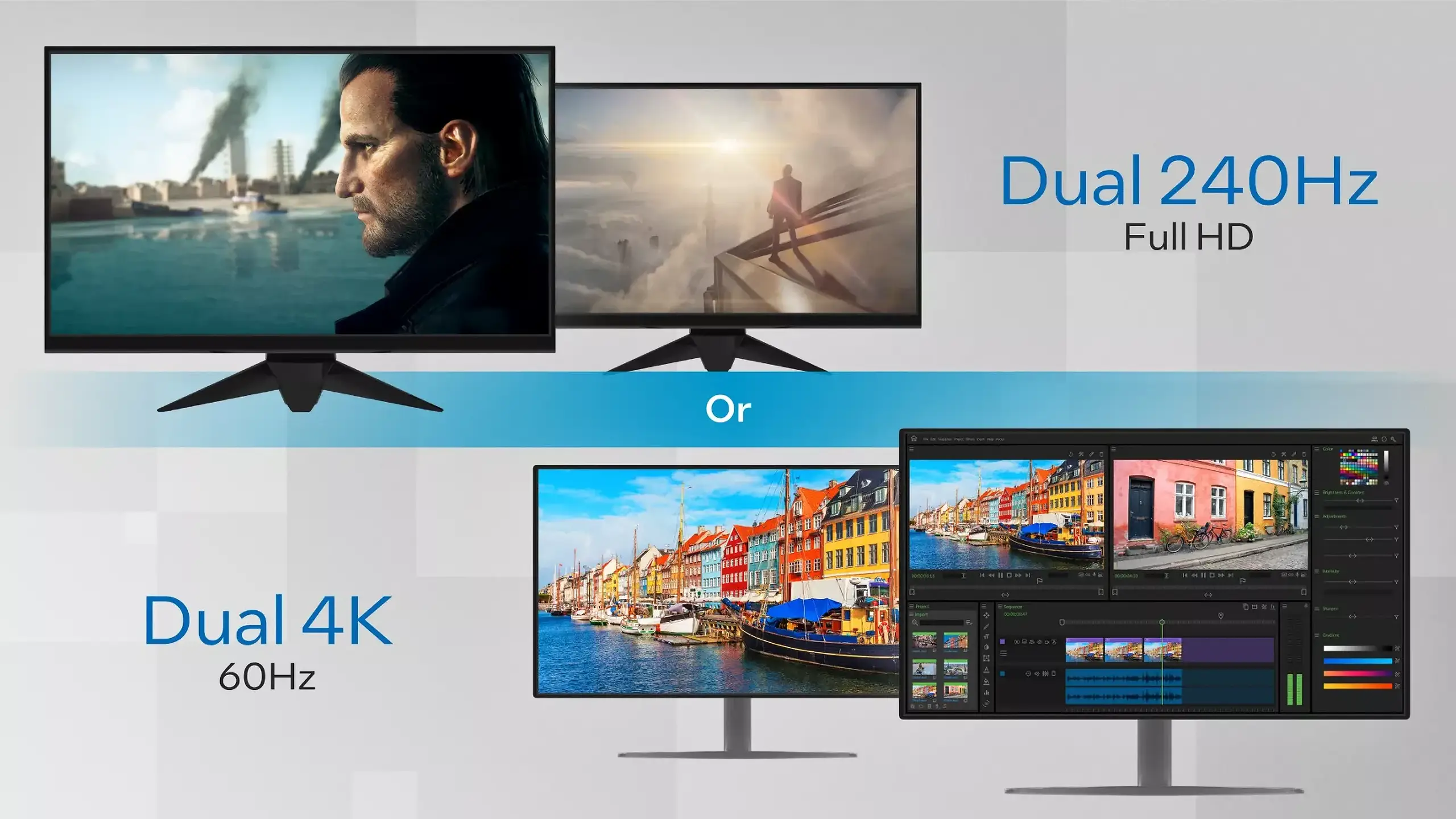 - Support natif de deux écrans 8K ou jusqu'à trois écrans 4K simultanés.