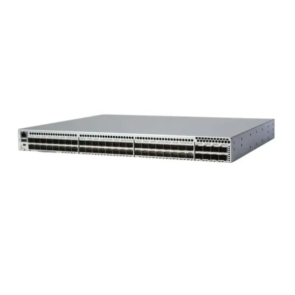 Type de produit : Switch Fibre Channel 64 Gb/s avec support SFP-DD Ports : 64 ports SFP+ (64 Gb/s par port) 8 ports SFP-DD (double densité, 2x 64 Gb/s par port, soit un total de 16 connexions 64 Gb/s) 24 ports 64G actifs Débit agrégé : Jusqu’à 8 Tbps Débits pris en charge : 4, 8, 16, 32 et 64 Gb/s Latence : Ultra-faible, inférieure à 700 nanosecondes Architecture : Non-bloquante avec redondance complète Refroidissement : Ventilation redondante, échangeable à chaud Gestion avancée : Suite Fabric Vision, CLI, SNMP, Web Tools Sécurité : SSL, SSH, RBAC, contrôle d'accès basé sur les rôles Dimensions : Hauteur 43,8 mm, Largeur 429 mm, Profondeur 558,8 mm Poids : 10,4 kg (23 lb)