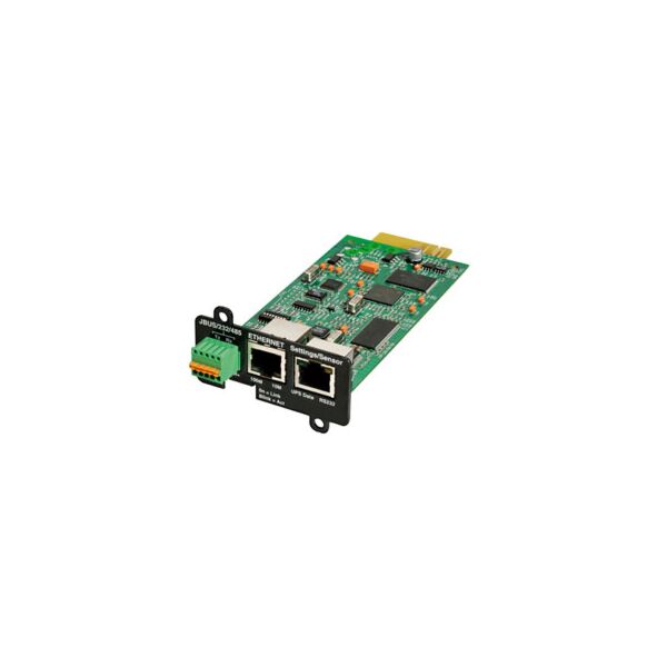 La carte Web/SNMP et MODBUS-MS assure la supervision précise et en temps réel d’un onduleur par un système de gestion technique de bâtiment (BMS) ou un système d’automatisation industrielle (IAS). Cette carte combine un agent SNMP, un serveur HTTP/Web et une carte MODBUS pour faciliter la supervision des onduleurs par tout environnement réseau qui utilise des SNMP et trappes, ou tout navigateur web.