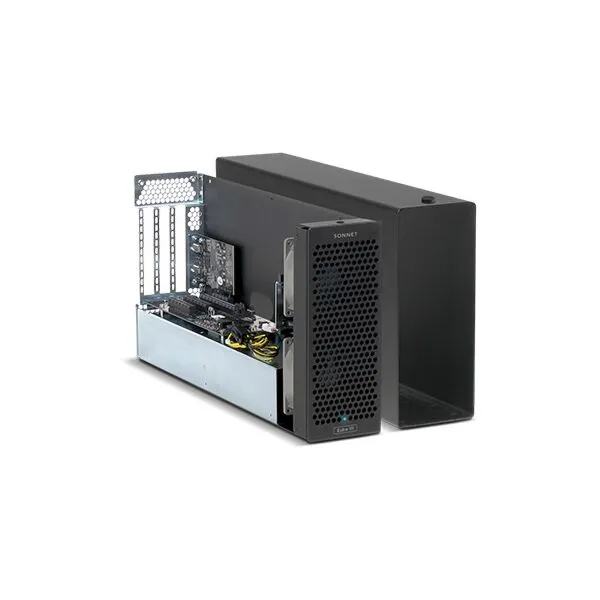 L’Echo III Desktop Thunderbolt 3 de Sonnet est un châssis d’extension en format tour permettant d’accueillir 3 cartes PCIe pleine longueur sur votre système équipé d’un port Thunderbolt 3. Ce châssis au format tour dispose de ports Thunderbolts 3 ainsi que de 3 emplacements PCIe pleine longueur permettant d’accueillir la plupart des cartes PCIe, 1 slot x16 et 2 ports x8. De plus il dispose d’une bande passante de 40Gb/s permettant de faire fonctionner les cartes PCIe à leur performance maximale.
